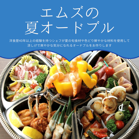 今回、夏オードブルとして、いまの時期のオードブルをイメージして頂けるメニュー構成で写真の撮影を行いました。