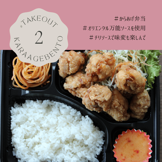 シェフが受け継いだオリエンタルソースをアレンジして味付けした特製からあげをたっぷり堪能できるお弁当です。
