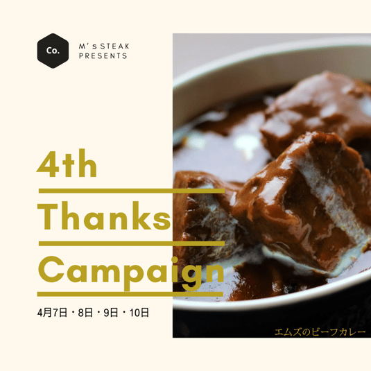 4月7日をもちまして、開店から4周年を迎えることになりました。これも日頃からご愛顧頂くお客様やお取引業者様をはじめ、エムズステーキに関わってくださる皆様のおかげだと考えております。