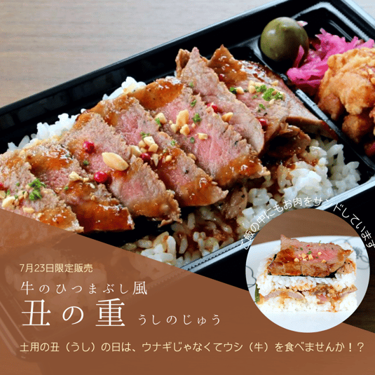 今年の土用の丑の日は、ウナギではなくウシを楽しみませんか!と言うことで、7月23日限定で『丑の重』の販売が決定しました。