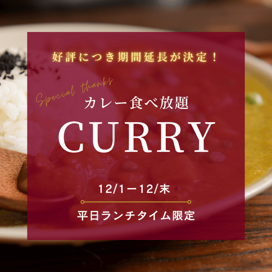 感謝の気持ちを込めて先月スタートしました『カレー食べ放題』感謝祭ですが、多くの方に喜んでいただき大変嬉しく思っていたところ、これだけ喜んで頂けるならと12月末まで期間を延長することに決定しました。