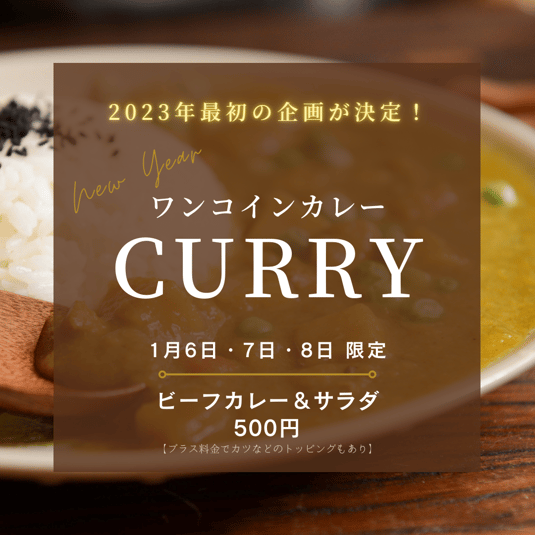 ということで、1月6日・7日・8日の3日間限定で『エムズ特製ワインコインカレー』企画を行います。