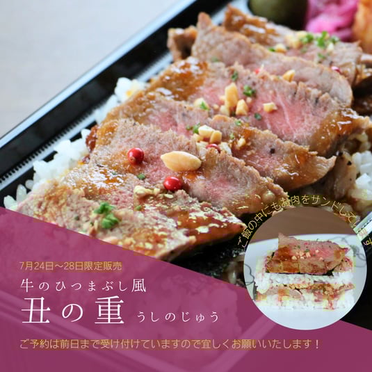 鰻が苦手な方や、骨が苦手なお子さま、丑の日も牛を食べたい方にオススメ!この期間しか食べられない「牛のひつまぶし風 丑の重」となりますので、是非味わって頂ければと思います。