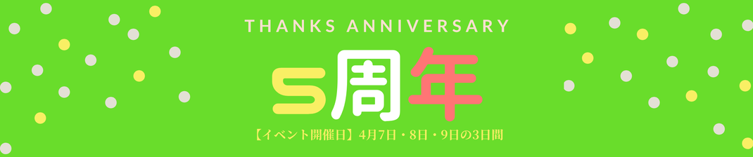 そこで感謝の気持ちを込めて下記日程にて5周年記念キャンペーンを開催します