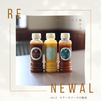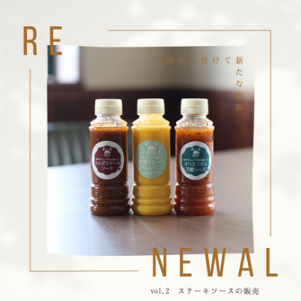 第2弾はエムズの料理に使われているソースを新たに販売することにしました!エムズの味をご家庭でも味わって頂きたい想いと、お客様からのご要望もありまして今回周年のタイミングでラインナップに追加します。これまでのドレッシングと万能ソースに加え、新たにステーキソースが仲間入り!