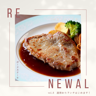 第8弾は「週替わりランチ」のご紹介です。週替わりにはなりますが、エムズと言えばステーキということで、「ポークステーキ」・「ハンバーグステーキ」さらに今後「チキンステーキ」も登場予定です。ポークにハンバーグにチキンに、牛肉以外お肉でもステーキに仕上げていきますねっ。あと、牛肉を炒めてプルコギ風の味付けを楽しめる「牛肉のプルコギ風ソテー」をご用意します!週替わりメニューは仕込みの都合や調整もあり、数量限定となります。