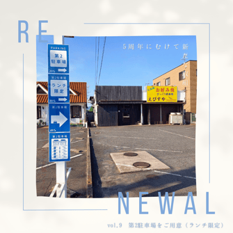 第9弾は「第2駐車場」のご案内です。連日たくさんのお客さまにご来店いただきありがとうございます!以前から、ランチタイム限定でお隣のお店にお願いをして駐車場をお借りしていましたが、案内表示をしていなかったこともあり、お客様にも分かりにくかったと思いますので、今回のリニューアルにあわせて、表示POPを掲出することにしました。