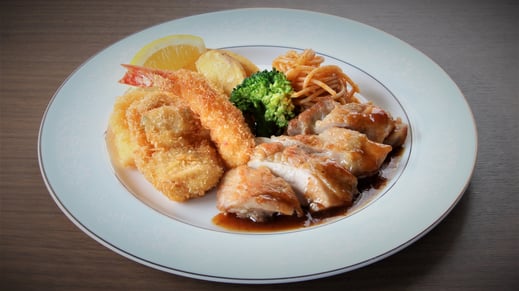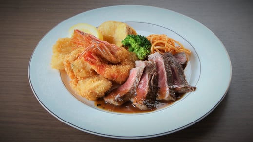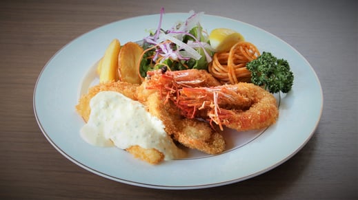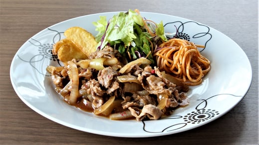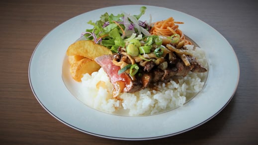 全てのメニューにごはん・味噌汁orコーンスープ付き